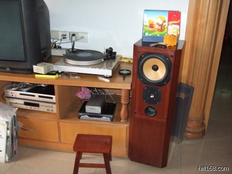 受我的影响,我的一个同学在后来也买了一套这组套件,然后请红木家具厂用“菠萝格”木料做了对音音箱,而且他听了我的意见,把脚架跟音箱做成连体的,省去买脚架的钱,而且更美观: