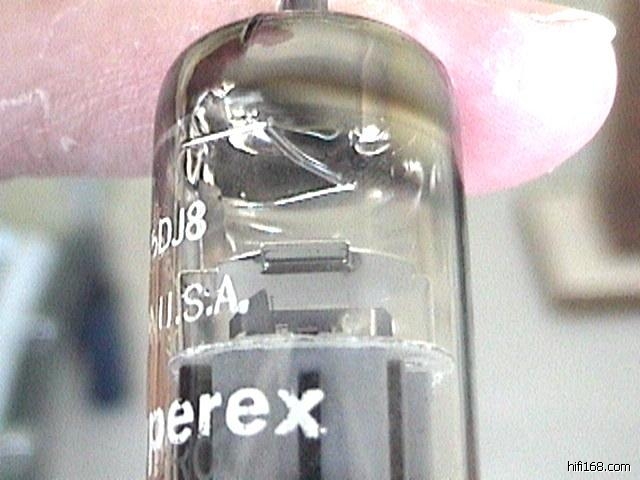 以前我收过一对很少见的吹喇叭标金脚D环7308,如下图,暗码是VR0,*0B也就是说是60年美国产的D环7308, 却打上了Amperex Bugle Boy的商标, 可以清楚的看到, 管子上印刷的是Amperex Bugle Boy 6DJ8 而不是Amperex Bugle Boy E188CC或7308. Philips 的商标管理和产品规划是相当严格的.