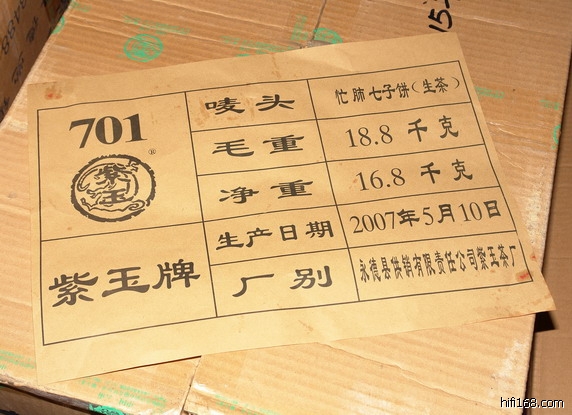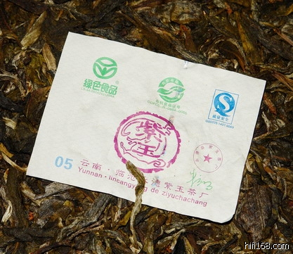 内飞上有人民币级防伪标签,还有茶厂老板朱总的签名。(2007/7/6 12:29:47 上传)
