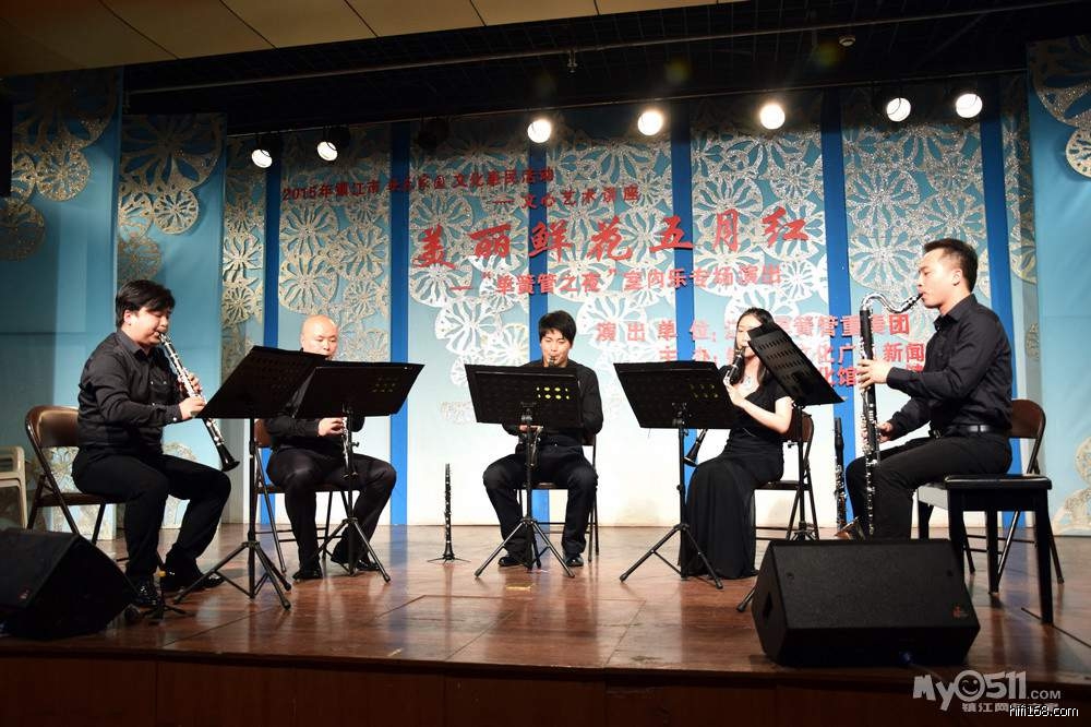这次来镇演出的是江苏单簧管重奏团,成立于2014年2月,以“科学训练,创新超越”为办团宗旨,乐团五位成员均毕业于南京艺术学院单簧管专业,具有丰富的演奏经验,在省内各大乐团担任单簧管声部首席,是江苏首支专业的单簧管重奏团体。乐团成立1年多以来,得到了著名单簧管演奏家、教育家,南京艺术学院王振先教授、国家一级指挥,南京军区前线歌舞团艺术指导常畅老师及江苏省管乐协会众多专业老师的指导,已经排练出几十首风格各异的中外管乐曲。乐团多次走进南京各大高校和社区演出,受到社会各界好评。