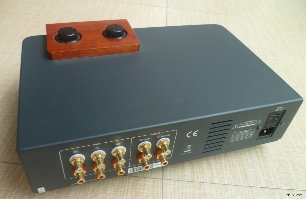 个RCA输入组和2个输出组。 还有一个很好的铝制遥控器,用于音量控制和输入选择。