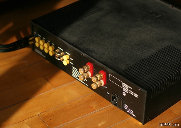 ECI-2承袭了家族中大哥们的外观造型,采用超厚的有机玻璃来制作面板,并以黑色油漆作衬底,再配上金色旋钮和两个金灿灿的把手,机器工作的时候旋钮上面还有小小的发光蓝色二极管作点缀,整体上透出一种典雅高贵的气息。ECI-2虽然在其家族当中属于便宜货,可在用料上一点也不吝啬,调节音量和平衡的电位器是名牌ALPS,输出功率管使用了东芝的大电流音响对管2SC3281/2SA1302。电源部分也很下功夫,一个大大的环牛不说,总容量20000μ的滤波电容使用了高级的ELNA,另外还有十来只容量小一些的电容也全部采用ELNA。据厂家提供的技术资料,ECI-2在供电线路的设计上采用了一种称为“悬浮变压器供电技术”(FTT)的独门绝技,可以比常规的接线方式提供大一倍的电流。