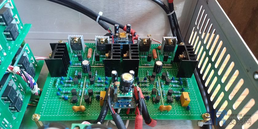电压放大级的滤波电解为日本4700uf35v15对,电流放大级的滤波电解为松下22000uf50v一对;因空间和成本限制,电压放大级没有采用稳压,优点是声音开放,缺点是线条感不如稳压。