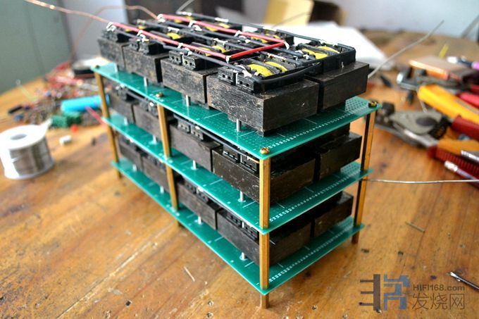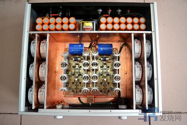 26变压器双十三路供电后级,前所未有的放大器,登峰造极的制作,里面共集成了26个变压器。烧友发来机箱、电解、变压器和接插件定制,图片供参考: