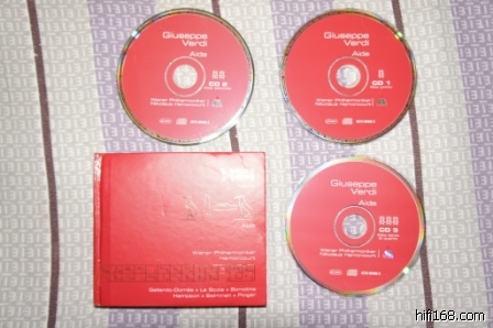 5、威尔第《阿依达》,哈农库特,3CD,Made in Germany 有码,厚厚的一本书,外壳有些轻微磕碰,3张CD都有些轻微的从纸套中抽出引起的痕迹。60元。[/size]