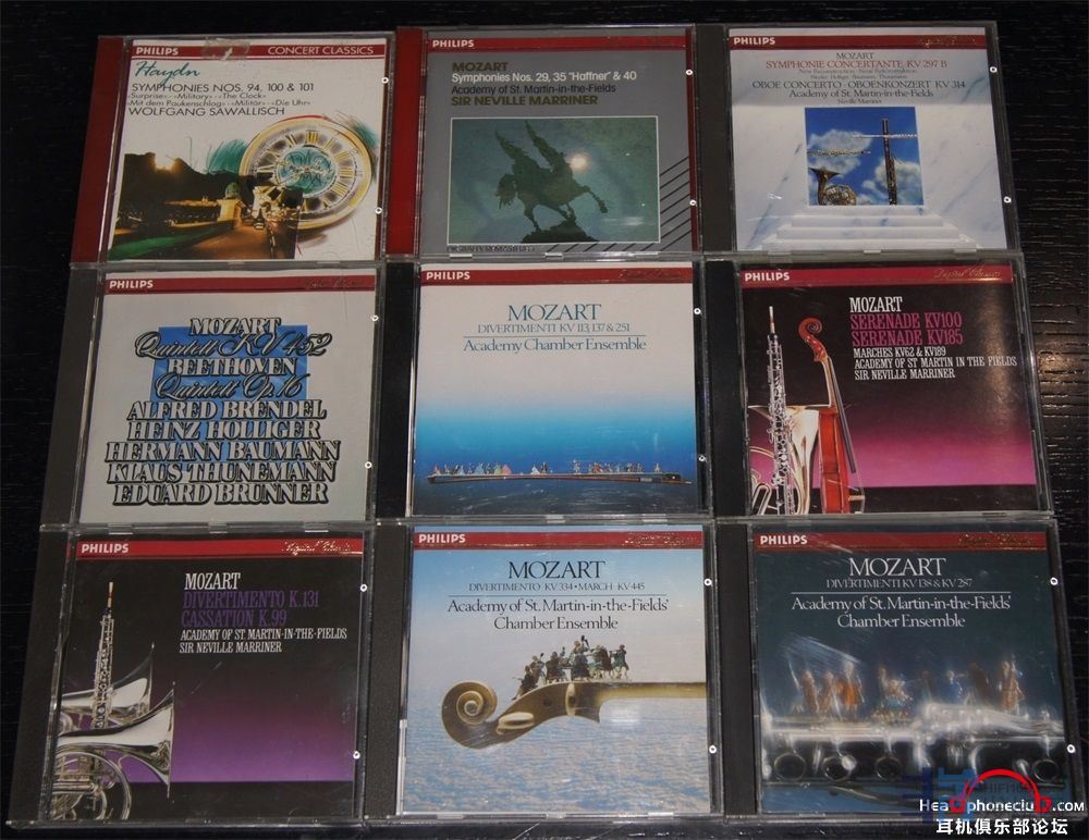 84、马里纳 &圣马丁室内乐团《莫扎特交响协奏曲,单簧管协奏曲》,尼克莱、霍利格尔、鲍曼等管乐大师合作,西德PDO银圈01 外侧边缘有些许掉银 碟片完美无痕 特价:88