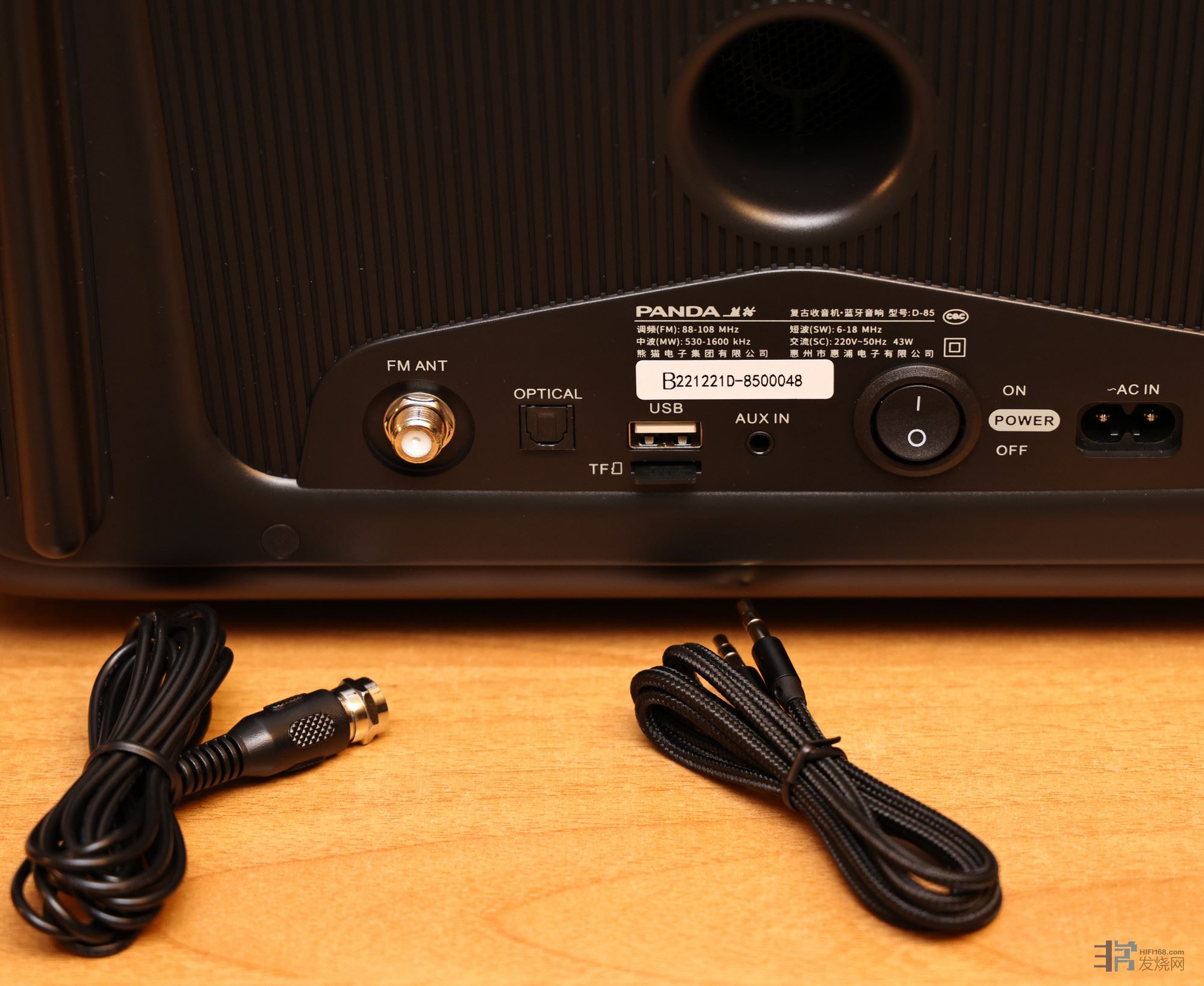 D-85 附送一条外接软FM天线和AUX3.5mm音频输入线,方便用户连接还支持TF卡和U盘播放,支持16bit/44.1kHz采样率的FLAC、APE无损编码和MP3格式,相当于一台自带播放器的收音机。
