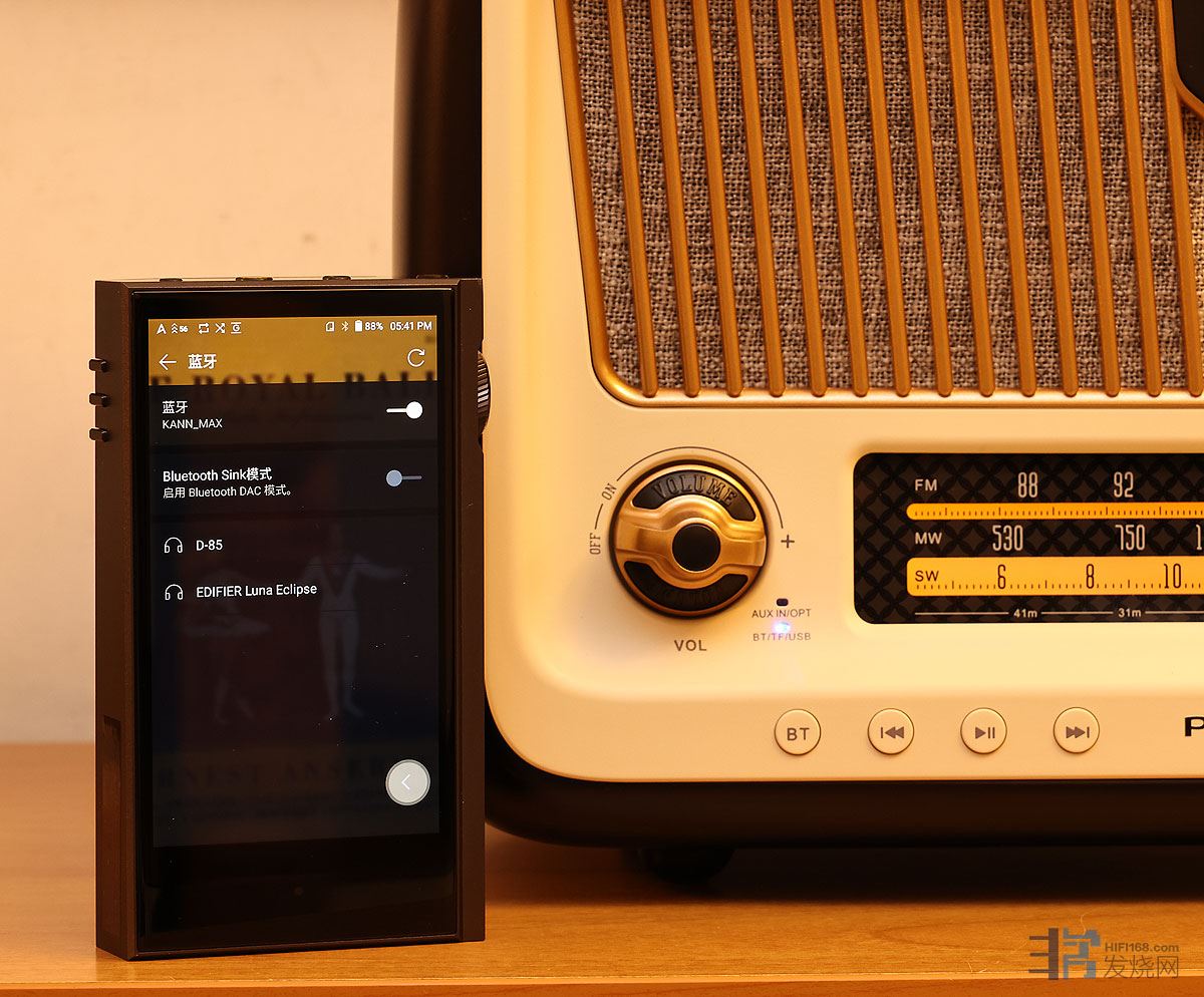 D-85是蓝牙5.0标准,低功耗连接,信号稳定,支持普通SBC和AAC编码,下图是我用AK KANN MAX 播放器用蓝牙连接上D-85。