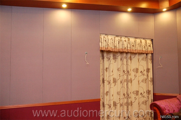 先测量房间参数,以计算房间的混响半径进行音箱摆位