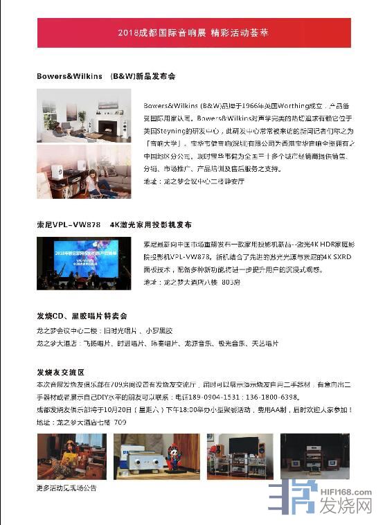 2018成都展豪华器材演示、精品音乐赏析、专家技术讲座将更加精彩,专门为展会订制的产品让来到成都展现场的爱好者受益。