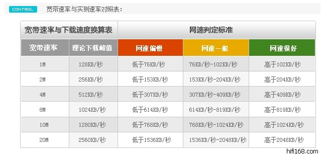 开通宽带的速度与理论下载峰值的数据量对比: