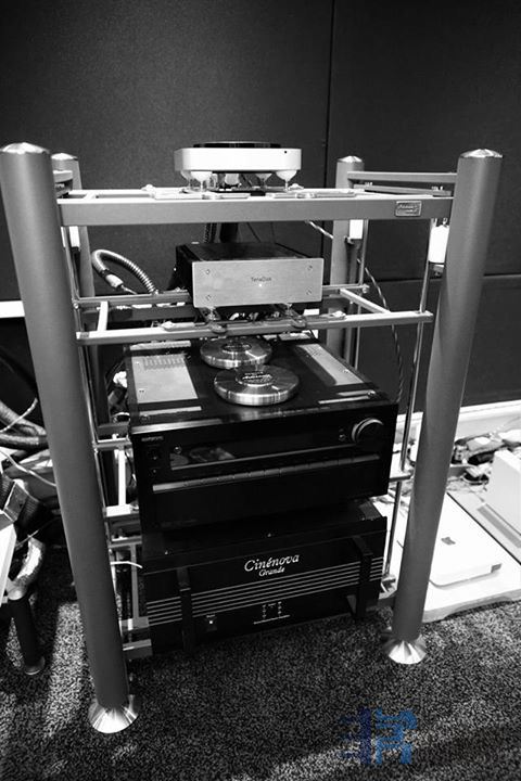 来看看这个设备架,虽然不认识这个架子,也能看出非常贵的制品,好像是传说中的“架宗”。还特别在功放上压了稳定的HIFI道具!具体什么牌子没研究。