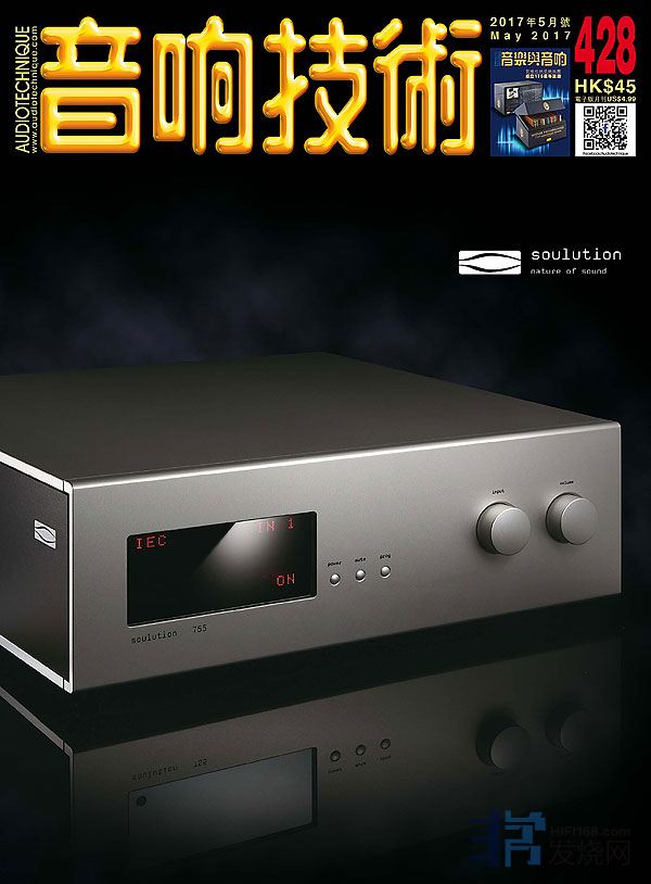 今期封面專題由Lee388評論 Soulution 755 唱頭放大前級,大草專訪Air Force One的生產基地 ,其他評論文章包括:MBL Noble Line N31 CD + 解碼器及N51合併放大器,Goldmund Telos 590 NextGen合併擴音機 、Acoustical Systems Palladian動圈唱頭 、Bully Sound L5前級 / S5立體聲後級、Kiseki PurpleHeart N.S. 動圈唱頭 、Unison Research Unico CD Due CD機及Unico 150合併機 、Acoustic Energy AE1 Active有源揚聲器 、Elac AM200有源書架式喇叭、Denon AH-D7200耳機 、Sennheiser HD579耳機、FiiO X5 III 高清音樂播放器 、Procella P15A 超低音揚聲器 .....,詳細內容請參閱目錄。