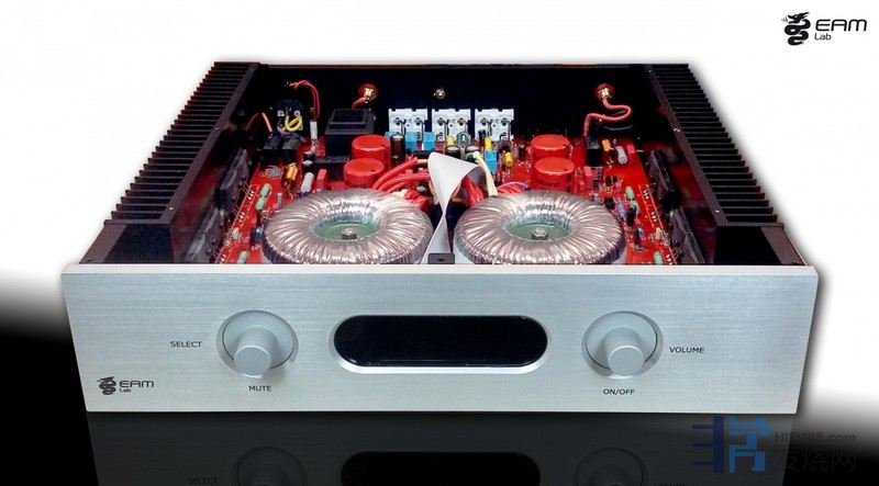 EAMlab并不以虚幻的声音描述做为行销主轴,而是以札实的技术与规格为后盾,用具体可观的规格数字为诉求,设计出可靠的产品。而EAM Lab的声音表现还不只是可靠而已,它用精准且写实的手法勾勒出音乐中最吸引人的成分,那就是直触心底的感染力,让人一听就很难自拔。目前EAMlab产品线涵盖了解码器、合并功放、前后级功放,这里不得不先提一下就是EAMlab的开山之作,就是HP01 /EAM HA600前后级功放。HP01前级采A类放大,各个输入都有独立的电路,HA600后级采用AB类差动放大,并使用一种威尔森电流镜(Wilson current mirror)的电路,每声道使用12颗功率晶体,可产生17安培连续输出电流,频宽5Hz至100 kHz(+-0.8dB),10瓦以内维持A类放大,超过10瓦则为AB类,总输出功率达330瓦/8Ω,2Ω阻抗时还有900瓦功率。