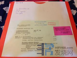 2. Two track original master - 两轨原始母带(ED0.1):多轨Session master自然的下一步就是经由mastering产生两轨的母带,因为大部份的商业文本都是两声道的形式。这里比较有趣,也是爱乐者需要注意的是,这个ED0.1通常不会是唯一的!! 而这里也就对应了同一个录音文本不同时期的Re-issue。因为不同时期针对Session master进行re-mastering都会产生一个不同时期的ED0.1。下图是一个可能是唱片公司最原始的Two track original master (也有可能是Session master)。
