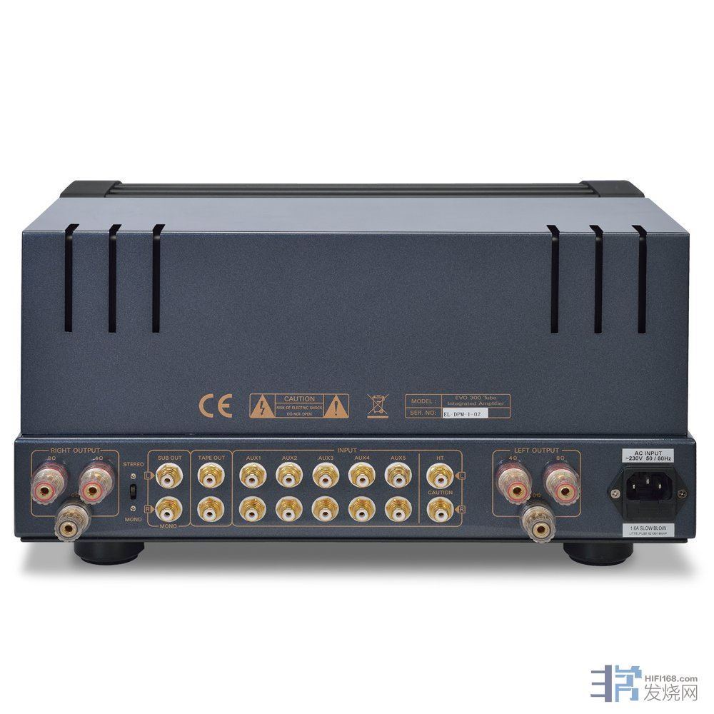 EVO 300基本版配612AU7小型驱动真空管及4EL-34五极功率真空管,发烧友亦可选6L6G6L6GC7581AEL34EL376550KT66KT77KT88KT120KT150真空管(新手要知,不能混合使用)。EL34 超线性功率输出 42 x2@8 Ω、三极输出 24 x2@8Ω。
