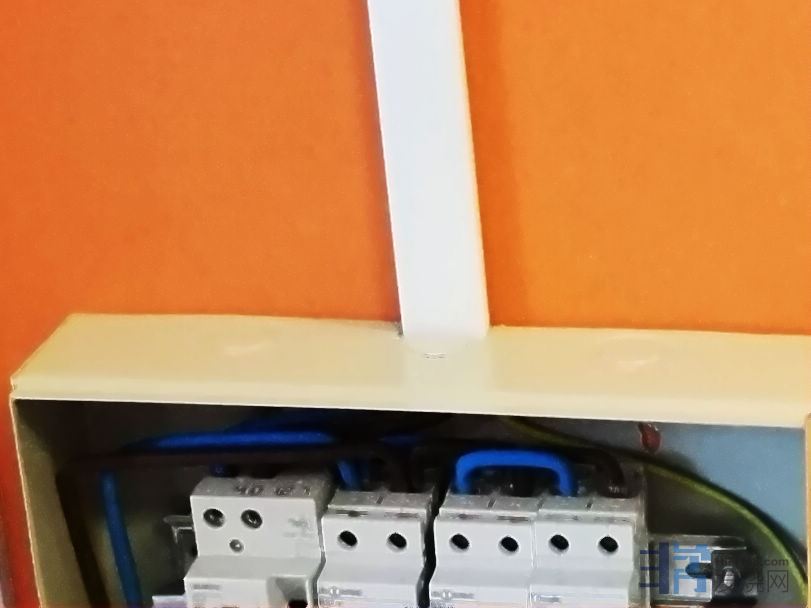最后一步是接线,这个自己半瓶水的知识,不敢下手,安全起见请了公司电工技师,帮助配电箱里面漏保,空开,空开→暗盒墙插之间的连线,还是因为是10平方线这么硬,越短越硬,反反复复比划着漏保和空开之间的距离,调整线缆的折弯尺寸,明盒墙插入空开下桩前穿入避震网,前前后后2个人花了4个小时最终完工搞定整体专线的改造。万用表检测电路火、零、地线状况,检查电源线母插最终接入器材端口,品字形左零右火确认无误。