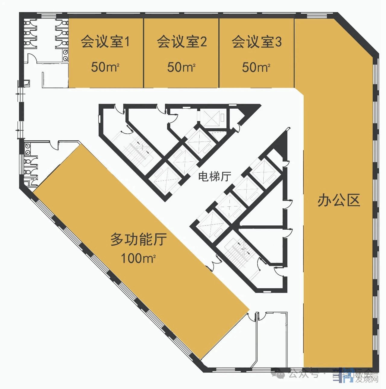 11楼还提供1个100㎡大展厅和3个50㎡展厅。
