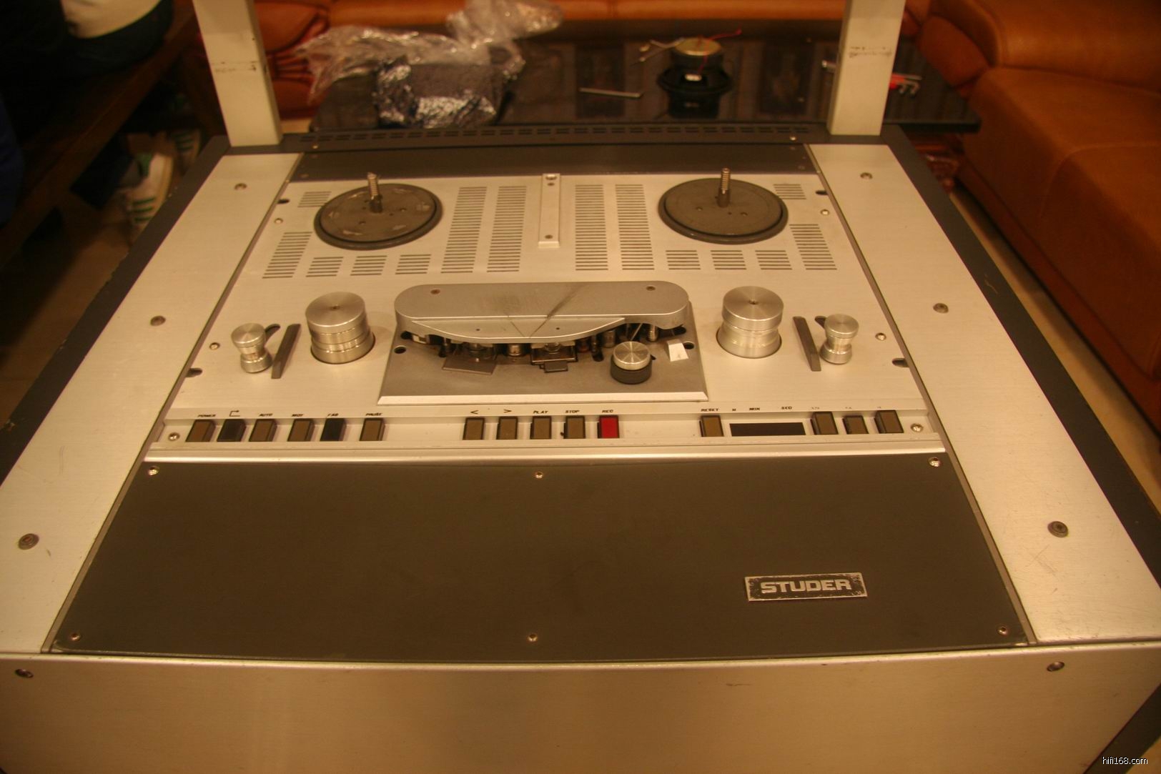 谢生明白音源的重要性,近段时间主力玩开盘机,短短二、三个月收集了一大批机:STUDER D67, A807, REVOX G36, 99第二代,TANDBERG TD 20A, TEAC 等等十多台名机,还有一台高质素的STUDER A80 在三楼另一个听音室里专一灌录唱片之用。听说他还会继续收藏高质素开盘机,