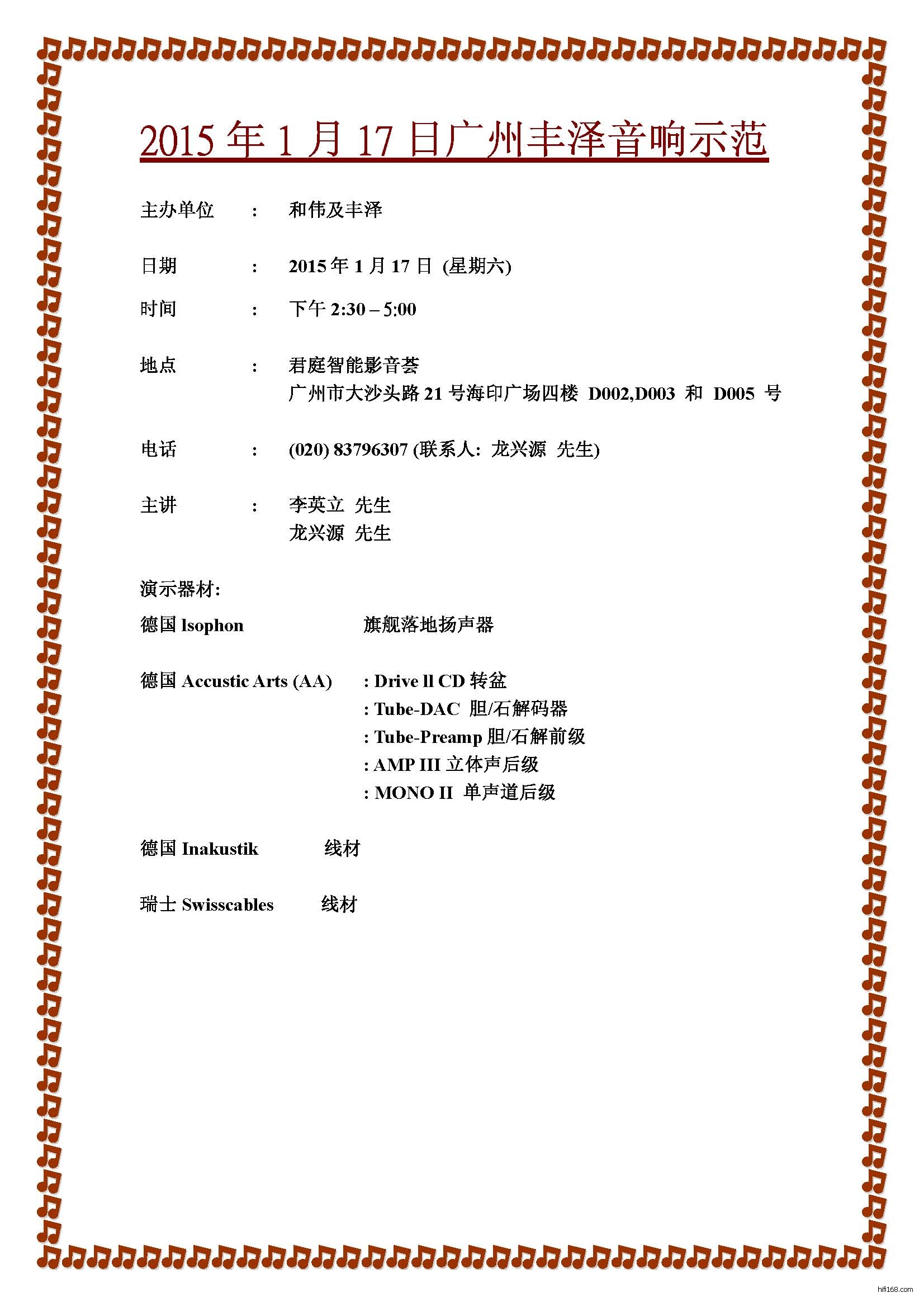 1月17日广州丰泽音响Isophon旗舰喇叭发布会及音乐欣赏会