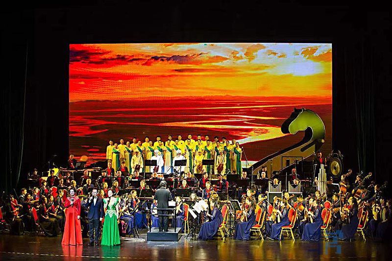 民族管弦交响音画《黄河从草原走过》是具有浓郁民族特色的原创音乐,用民族管弦乐的形式,以富有文化内涵、风格各异的民歌为选材,创作出能代表当地文化特色的民族器乐曲,展示了黄河流经内蒙古大草原的地域风情以及多元文化的融合,借此来歌颂黄河的伟大,讴歌各民族的大团结。