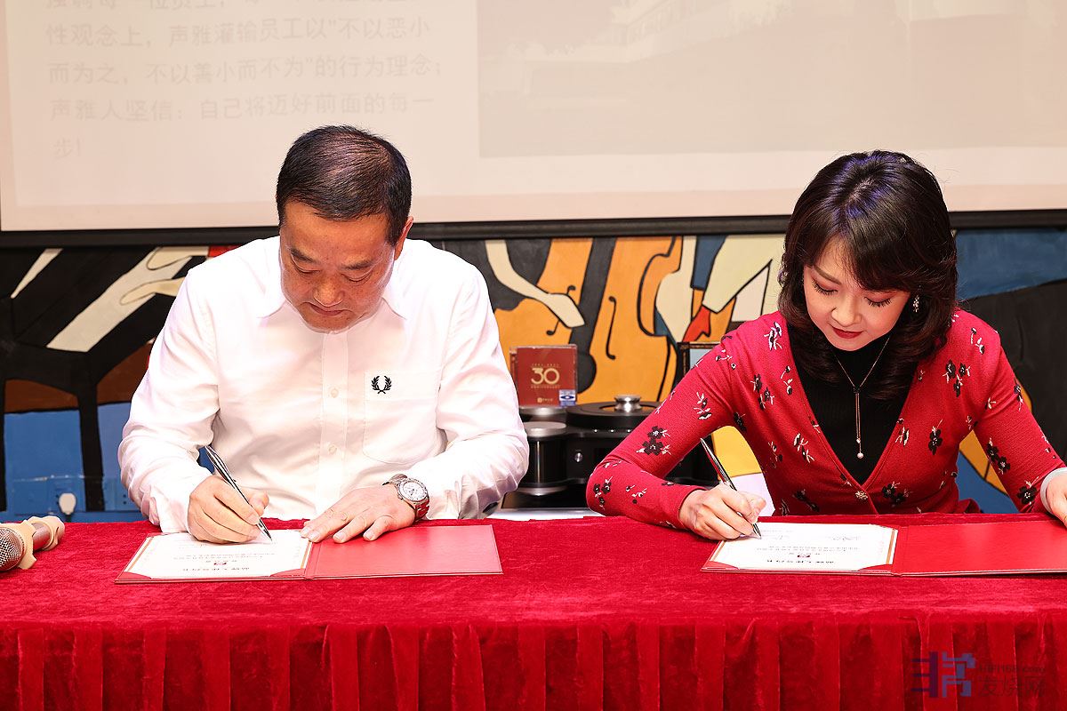 接着由声雅何总和陈佳上台进行声雅品牌大使签约仪式。