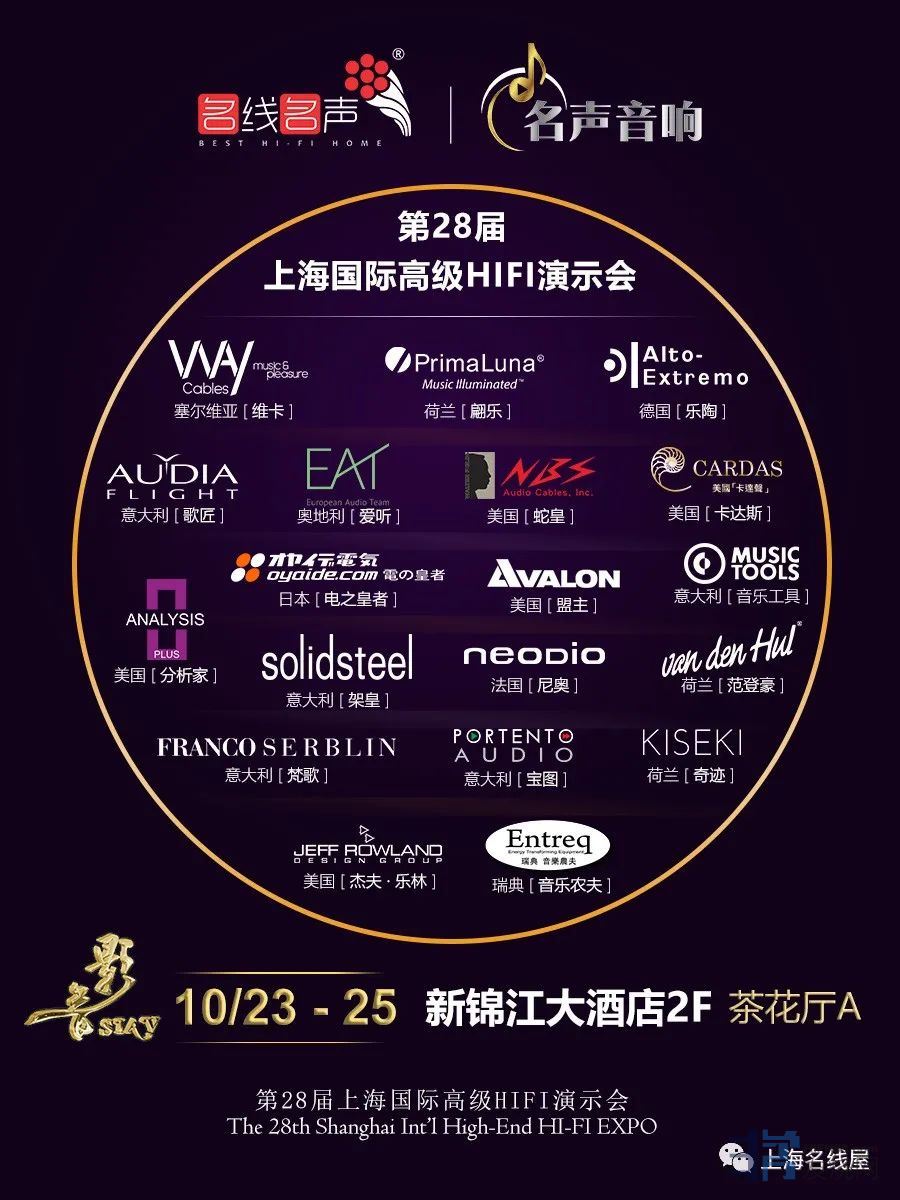 一年一度的上海国际高级HIFI演示会已经第28届了,原本都是每年的4月份举行的,由于今年疫情关系推迟到10月23日在新锦江大酒店隆重举行,随即【名线名声】将携带众多国际知名音响品牌及新品亮相现场【新锦江2F-茶花厅A】期待您的光临!