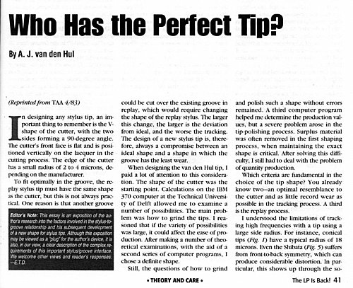 照理说唱头针的尖端要能够跟唱沟槽紧密配合,它的形状应该跟原始刻沟用的切割刀一样才对。