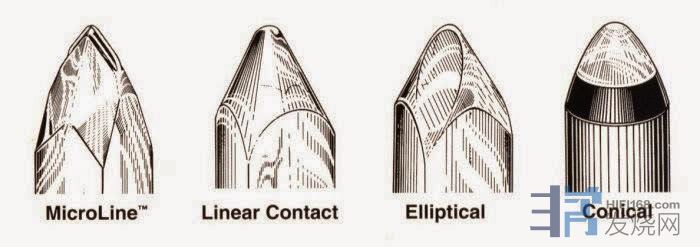 除了上面提到的循轨性、磨损度两点求得折衷之外,还有第三点考虑就是:尖头侧边的圆弧半径大的话,高频就因此受到限制。例如圆锥头一般是18 um(是无法跟随 2 um切割刀做出来的唱片沟槽的)。