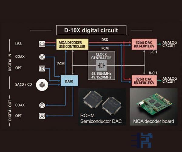 二,罗姆半导体公司的新芯片——ROHM Semiconductor MUS-IC™ BD34301EKV数字到模拟转换器,luxman是全世界第一家使用,支持PCM 32bit/768k DSD 22.4M以及MQA