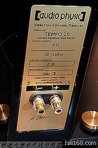TEMPO 25周年限量签名版尽管与普通版有着一致的外形尺寸,但如果不是仔细端详,还以为飞星又出了新的品种系列,仅就其通体乌黑光可鉴人的钢琴烤漆已足够令人惊艳,更毋庸说一些恰到好处的雕饰搭配,正如位于箱体正面下端居中,刻有25周年字样的圆形标牌饰盖,因呈现金色光华而独具珍贵。与之呼应,其底座上的四枚避震脚钉帽盖同样使用耀眼的金色,显然经过全新设计,整体视觉效果更是于庄重肃穆中突显大气典雅,于焕然一新中蕴含非凡气度。飞星Tempo 25周年限量签名版的基本配置相较普通版并无变化只是用料制作更为精良,仍是三分频4单元的设置,包括一枚1.75寸高音单元,一枚5.9寸独立中音单元和两枚采用双侧低音设计的7寸低音单元。其中著名的HHCTⅡ高音单元和HHCM中底音单元皆使用HHC振膜(The Hyper-Holographic Cone) 并采用独特的双框架(double-basket)设计,材质以铝合金振膜为基底镀上特殊涂层, 在轻巧之余还拥有良好刚性,在提高反应速度的同时也避免了各频段间音色的干扰。透过內框的特殊塑胶材质更具有阻尼作用,能消除一般单元使用金属框架所产生的铃振问题;至于包覆在外直接接触磁铁的铝合金外框,能有效传导活塞运动中产生的热能以达到散热效果,而塑胶內框在此也能阻止一般单一框架结构將热能再次传回单元。Tempo25签名版箱体是有些后倾的,倾斜角度显然经过精密设计,以保证高中低三频声音传递速度的一致,箱体截面呈现不规则的前窄中宽后窄的设计,中间以圆弧凸出过渡,截面类如木制酒桶形状,前面最窄14.6cm,中间最宽的地方是18.7cm,后面是12cm,这样的不规则设计可以将箱体内部有害的驻波降至最低,其内部工艺结构同样也是按照旗舰CARDEAS的超复杂箱体结构整体缩小而成。而揭示这一切最大不同的自然是位于箱体背面的黄金版制作铭牌,除了标注必要的型号参数,还依次注明了限量版,产地,编号,以及飞星总设计师Manfred Diestertich的亲笔签名,由于中国和香港地区发售仅限33对,从而更为凸显其意义非凡的纪念价值,此外背面尤以两枚硕大的WBT顶级镀金接线柱傲然挺立最为闪亮夺目,未及开声心中已是充满期待。