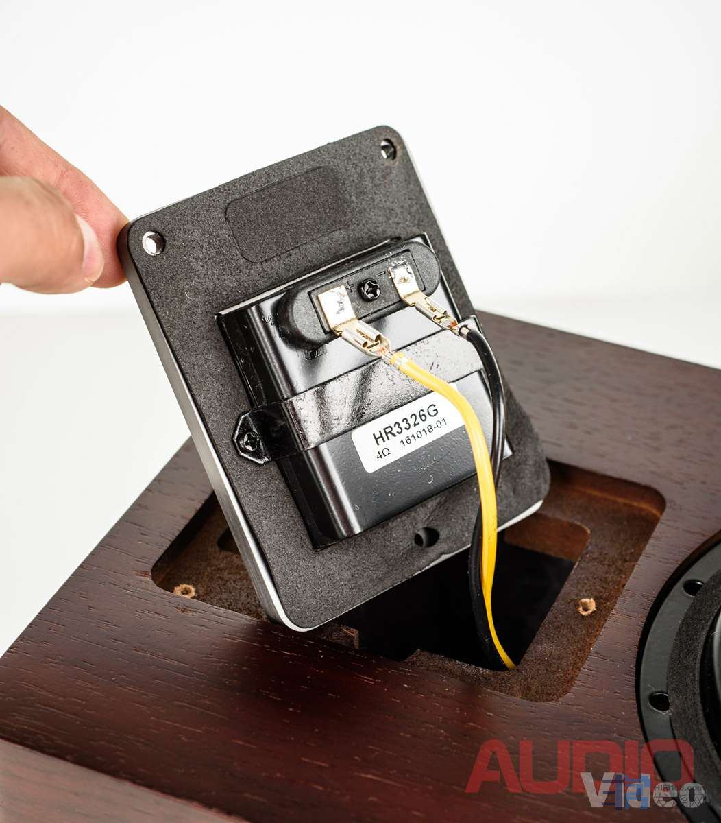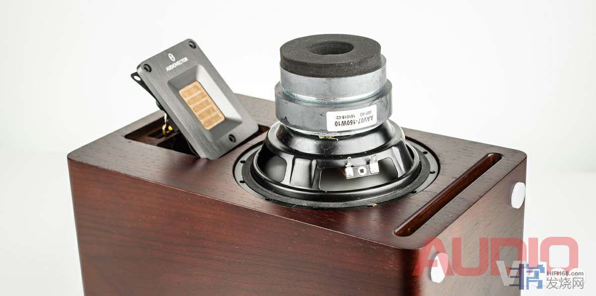 低音扬声器使用了表面光滑的振膜,没有防尘帽的夹层结构。它由两个铝音盆组成,中间为一层软质阻尼材料。低音单元使用带有通风孔的双磁钢。