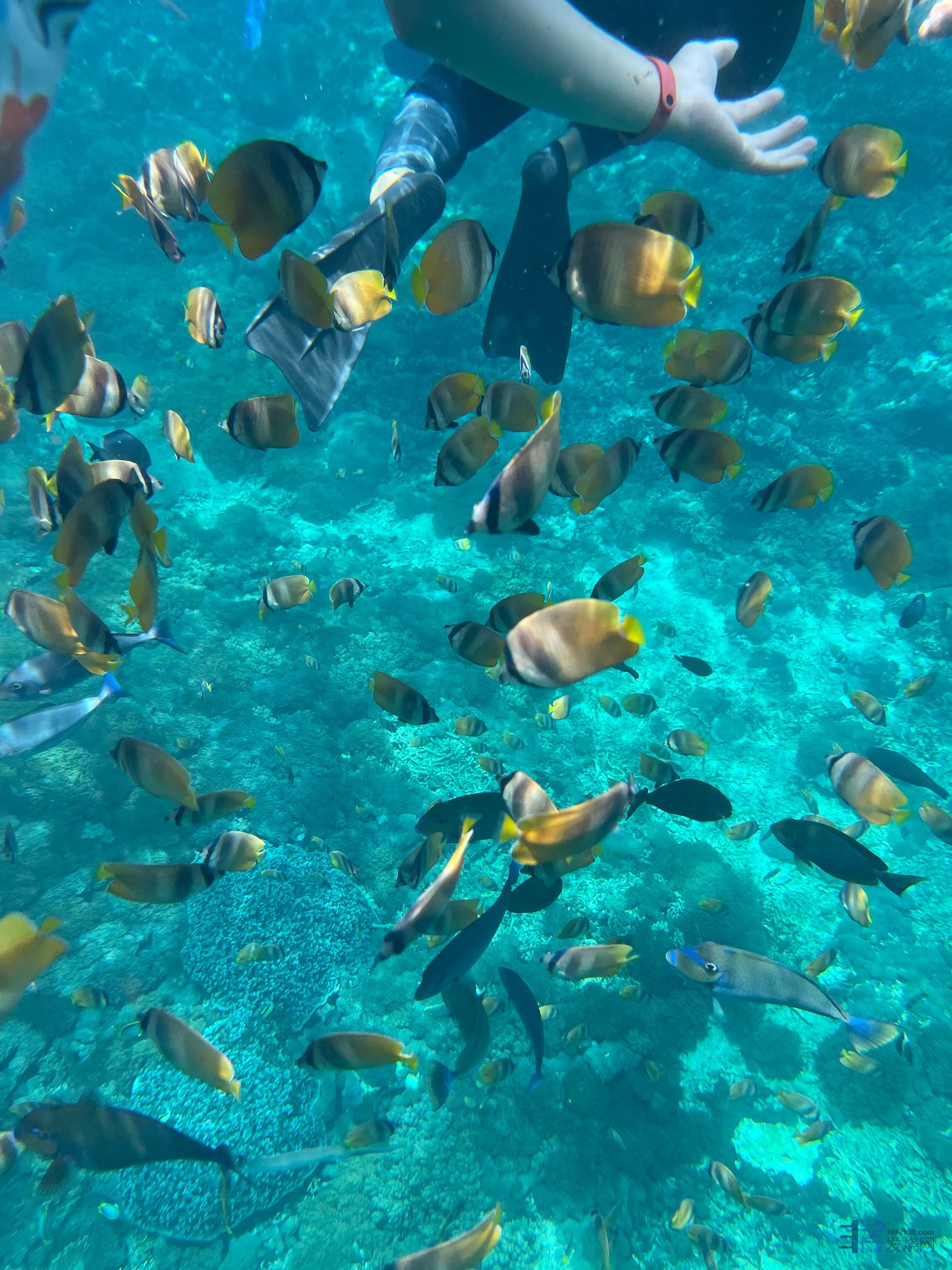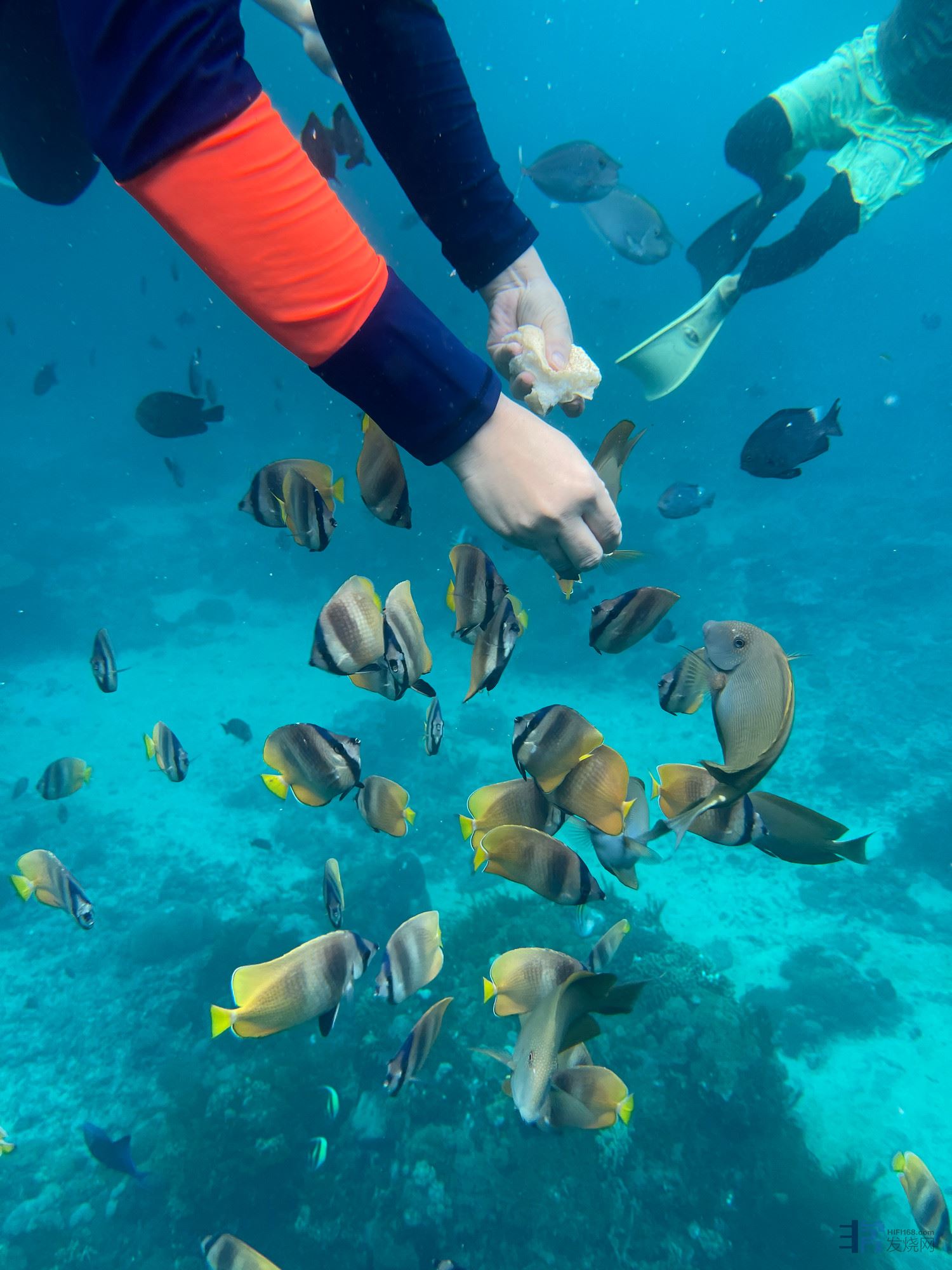 水温很舒服,水也非常的清,记得自己多带面包去,导游给的不够用,有面包就有鱼。