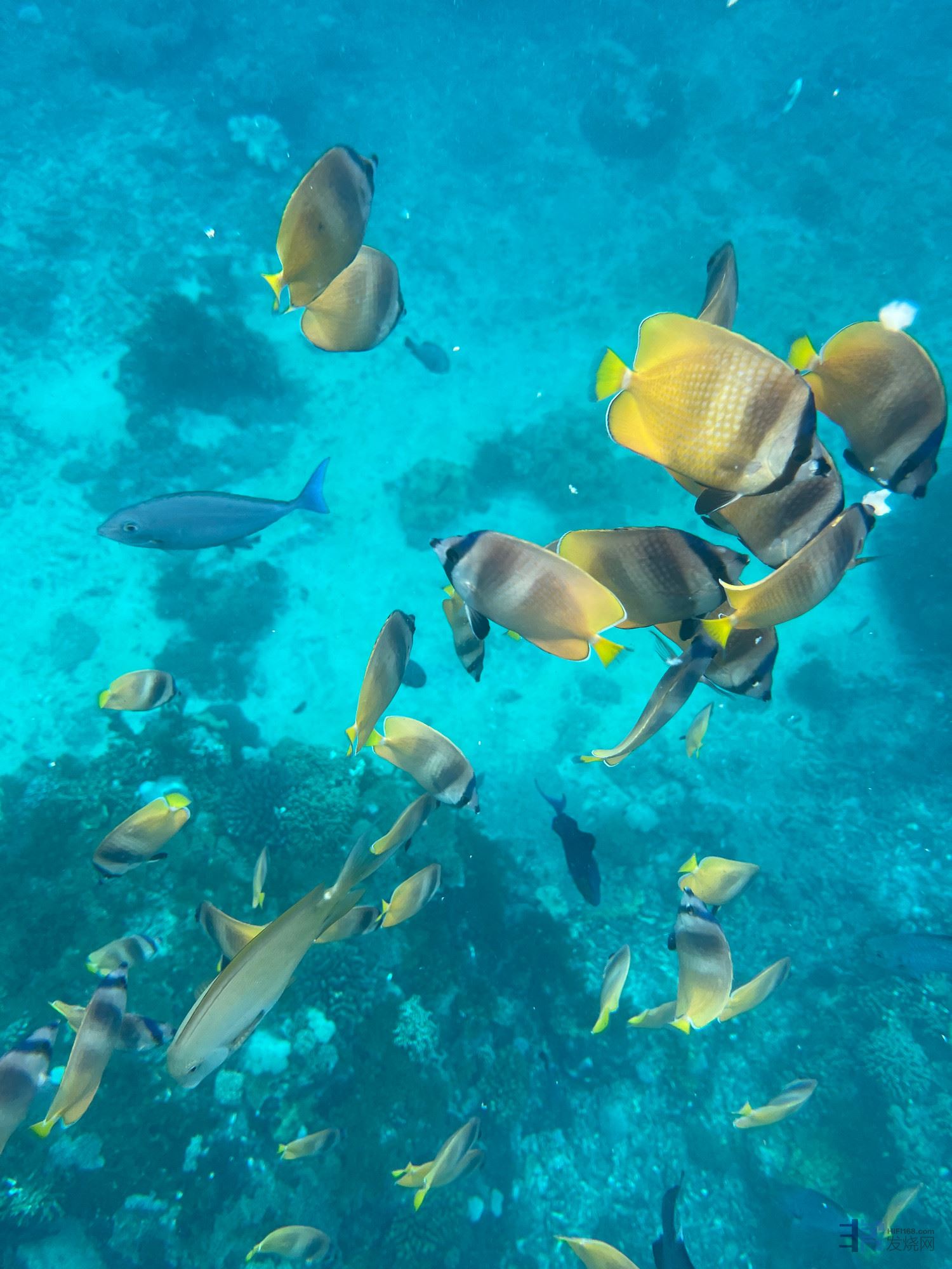 我提前在淘宝买了水下摄影手机壳,直接用苹果手机拍的。