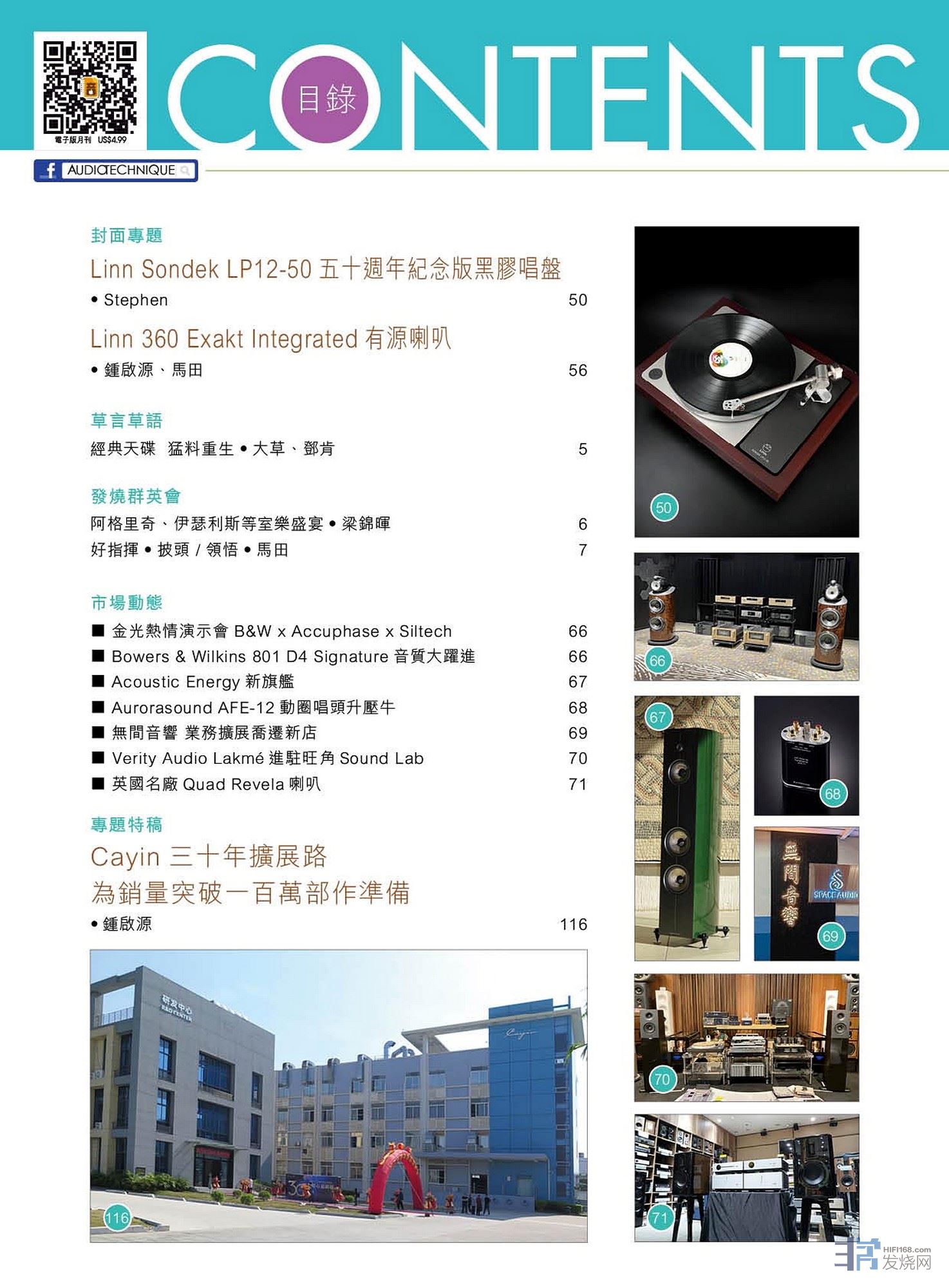 今期封面專題由Stephen評論Linn Sondek LP12-50五十週年紀念版黑膠唱盤、鍾啟源、馬田評論Linn 360 Exakt Integrated有源喇叭