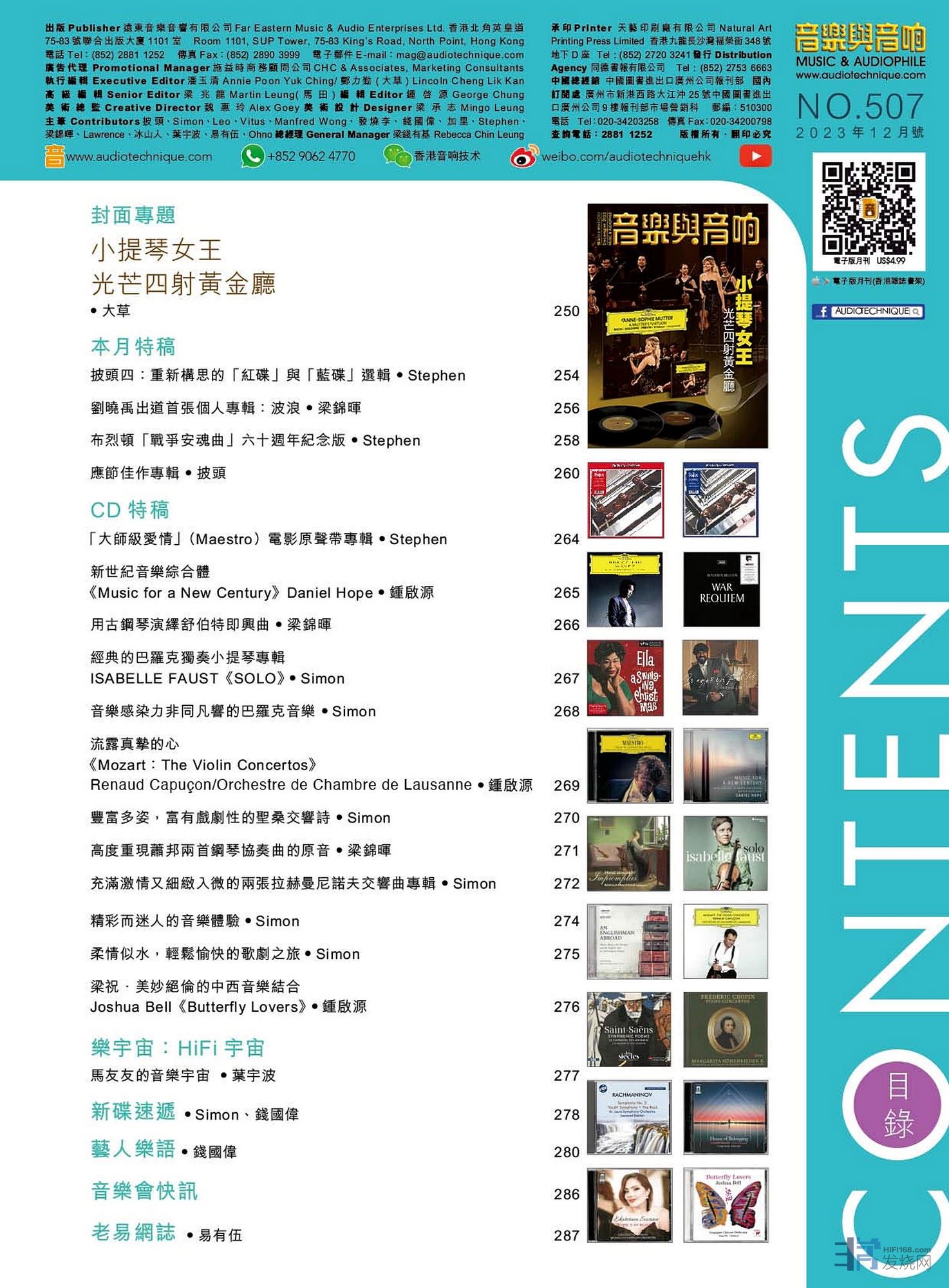 今期的音樂與音响封面專題 : 小提琴女王光芒四射黃金廳。