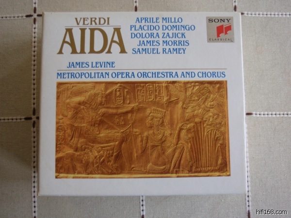 但是90年代后重新数码化的版本(如图)是有问题的。这一版《阿依达》比初版的音量会大而亮,但是在最高潮的凯旋合唱,高频区明显饱和失真。事实上,同期重新数字化的同一“RCA Opera Treasure”系列的歌剧都把音量调大了,但是因此失真饱和的,似乎就是这版《阿依达》。