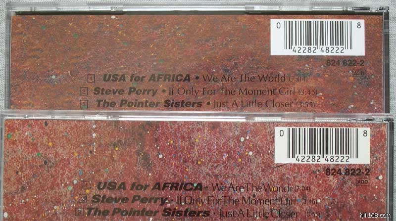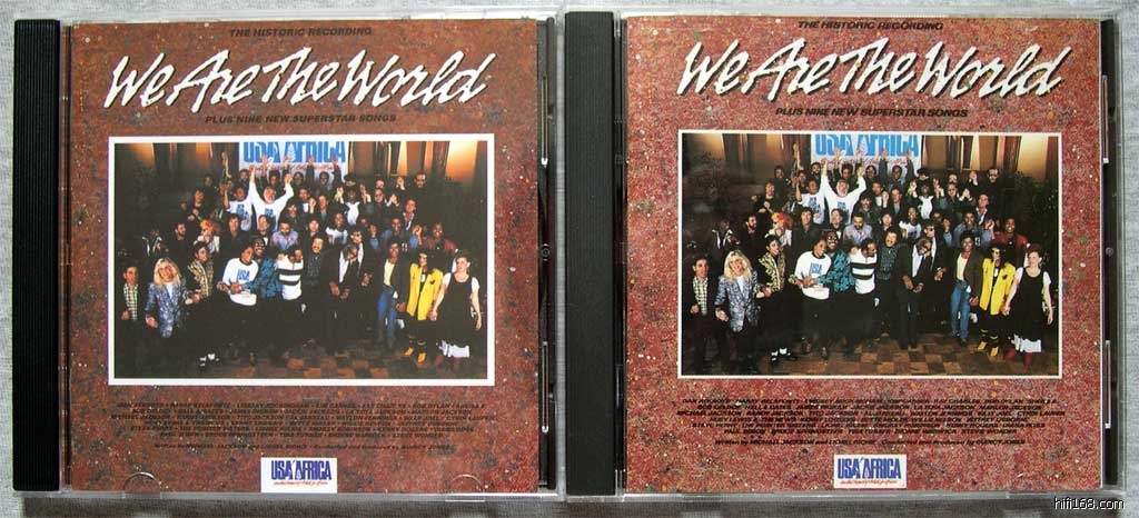 不知道是我们出口的,还是老外自产自销的.反正我是不幸收获了张高仿We are the world.问题是价格并不低,买得时候根本没朝高仿的方向想,但卖家反复地贴就引起了我的注意,结果拿出在美国买的版本一比较,差别还是明显的.