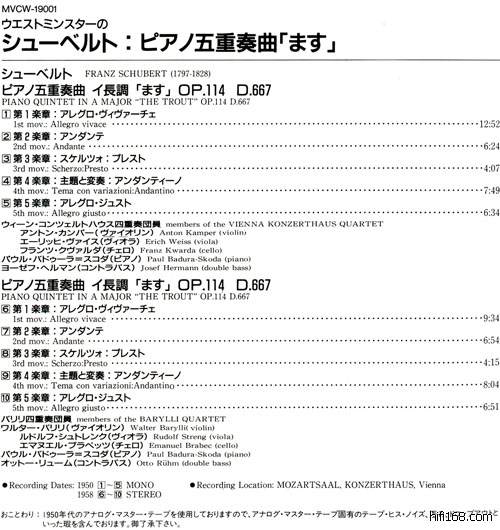 Westminster:演奏厅和Barylli组的“鳟鱼五重奏”初CD化版 03.jpg