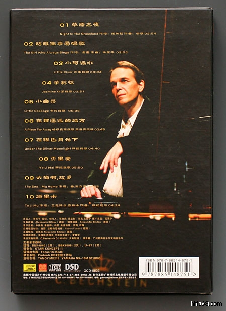 这是一张由德国钢琴家Alexander Bildau(亚历山大)用德国的世界著名顶级钢琴品牌C.Bechstein(贝希斯坦)大三角琴演奏的、经过改编的中国音乐唱片,录音师是中国十大录音师杨震,录音地点是广州星海音乐厅2400平方米交响音乐厅,录音共采用6支话筒,其中两支主话筒是世界限量制造100支的、被世界各国录音师称为心目中的“劳斯莱斯”B&K4040金话筒。