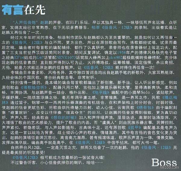 回复:最新发烧唱片在线试听(178):柏菲唱片《赵鹏:低音风12级》