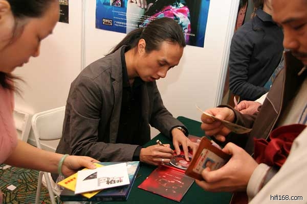 赵鹏在刚刚结束的白天鹅音响展上给发烧友签名。