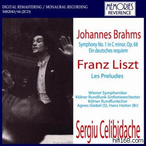 Celi跟维也纳交响乐团唯一的合作录音,1952年10月的现场Brahms NO.1和List “前奏曲”;“德语安魂曲”则是1957年10月跟科隆广播乐团的现场,只得注意的是歌手有Hans Hotter。