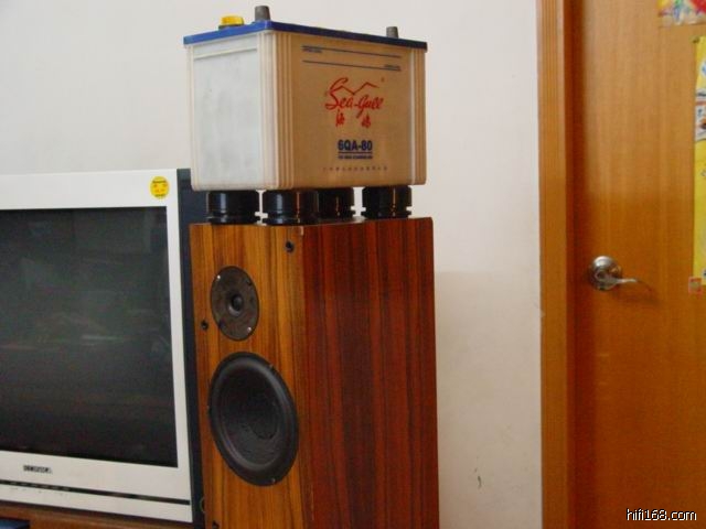 曾加了一尺厚HIFI杂志,再用13磅哑铃压上,后用40加仑水桶压上,还是不够满意,上周一专业老烧过来,见我这三套弹簧避振在闲置,就叫我撤下HIFI杂志,先換上一边用弹簧避振加蓄电池,一试之下喜出望外.声音感觉沒有压抑了,非常之鲜活! 简直似在现场观看般,非常非常HI;P