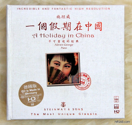 这是abc唱片公司最新出版的一张德国压碟的HD唱片,由被称为“爱尔兰钢琴诗人”的Adrien George用斯坦威钢琴演绎17段中国音乐,录音地点是建于1894年的德国月神音乐厅,唱片运用了单点录音技术,采用1BIT 5.6448MHz技术录制。