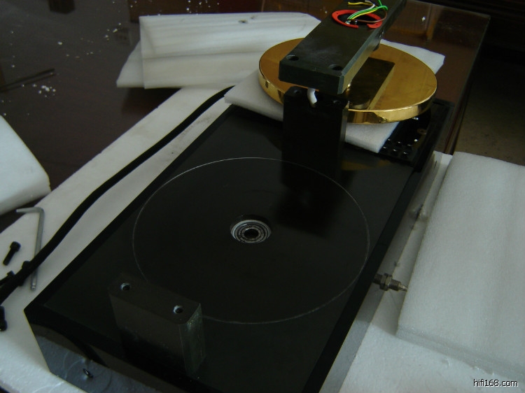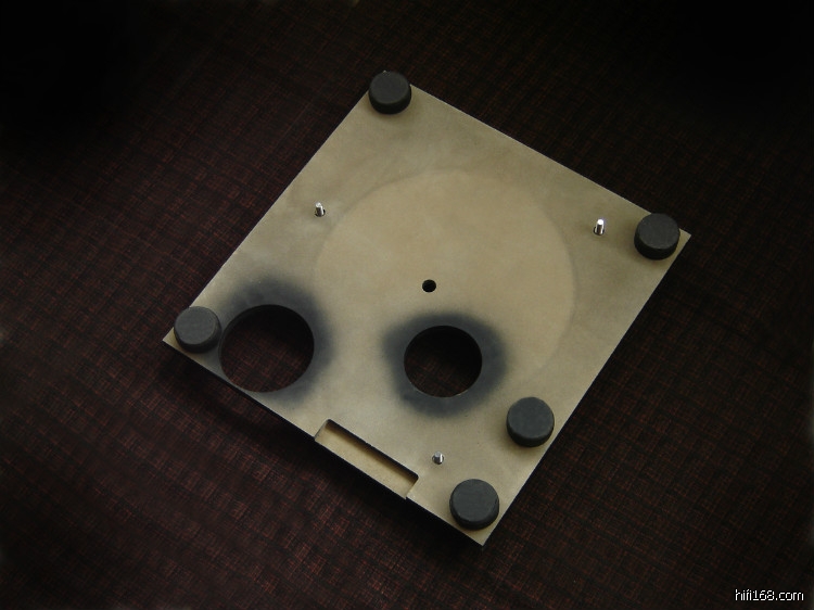 “空军一号”的转盘和一体机参考唱盘的转盘是一样的,不同的是一体机参考唱盘的马达安装在转盘底座内。