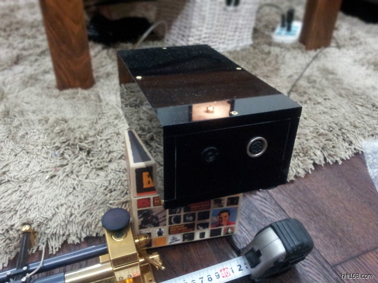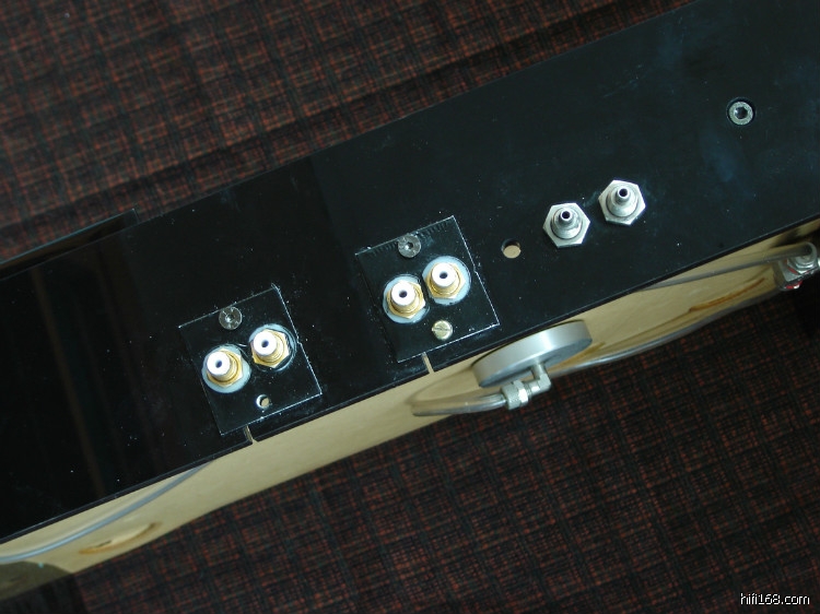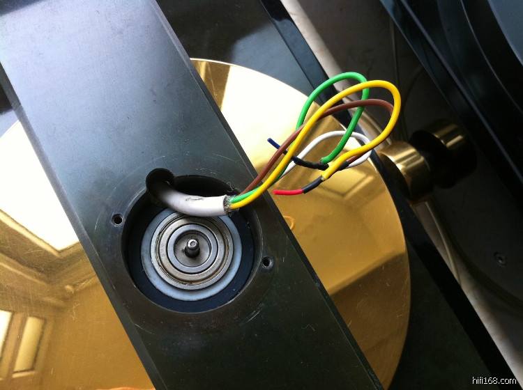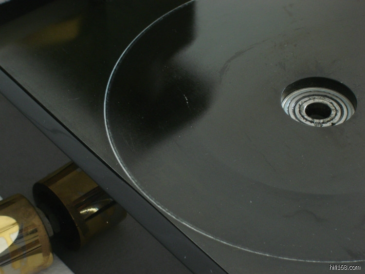 这套系统就是一体机参考唱盘升级“空军一号”,拆去参考唱盘内的马达(唱盘台面的左后方还能够看到一体机安装马达轴头的圆孔)。