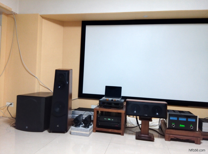 略感到美中不足的是,因为谢生家是用客厅的长边来安放银幕,前后墙距离是4.3米,两个后环绕音箱,只能挂在沙发背后上方的墙上。这样距离人耳就比较近。正常环绕音箱是在人耳背后稍远一些的距离最好。所以谢生家的客观条件限制,现场听到的后环绕声场不太明显,没那种很强的包围感。因为我平时也经常听DTS6.1的一些发烧唱片专辑,对这个后环绕体会很深,在我老家我用的是5声道,后环绕离人耳有2米左右,声场就很清晰了,包围感也强。另外我还听一个5.1声道的游戏耳机,用这个耳机来听5.1DTS的,前后环绕的声场也是非常明显的。