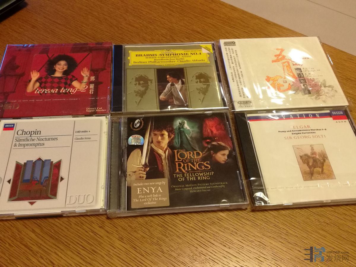 最后一张碟是Warner出品的原声指环王的第一部《魔戒同盟》,第五首“黑骑士”开头的巴松管以往听来形体感较大,突出巴松管单件乐器的演奏,接着是长笛奏出田园风格的主题,现在听来,巴松管没有那么突出,而体现出来的是空间感,对!不再让巴松管独奏明星般的那么突出,而是乐队的一份子,说明舞台感和景深感更好了。“卡萨督姆桥”是我经常拿来试机的音轨,霍华德·萧以前为电影配乐不是很出名(因为指环王喜欢上他的作品,才知道沉默的羔羊也是出自他手)指环王三部曲我听来是典型的瓦格纳式的风格,好了回到“卡萨督姆桥”桥段吧!乐曲开头乐队合奏那激动人心的铜管乐,激情四射,男声合唱衬托出矿坑深处的阴森气息,整段曲目显得气势十足,爆发力惊人,动态对比音量越大越刺激,史诗性的大片,每每听来都有那荡气回肠的感受,继续说现在在专线供电情况下,伦敦爱乐演奏的有所收敛,现在表现追求的不是电影原声那一味的张力和动态对比,伦敦爱乐倒像是维爱的风格了,原先铜管乐高音表现有点炸,现在“收敛”使乐队听起来稍柔,更像是在听古典音乐,圆号和长号表现出那璀璨的金属味,但仔细听速度感和动态对比不但没压缩,反而是能量感分布更均匀,不再突出某个声部,而是整体感更好。最后一首乐队演奏的“同盟瓦解”乐曲比以前显得更加抒情,整曲基本是弦乐组在演奏,远征队成员有霍比特人、剑客、矮人、精灵,在精灵国组队休整后,为了一个使命大家要穿越妖魔鬼怪的重重防线,最困难的是要克服人性自身对魔戒的贪婪,小鼓不时的奏起,时时催促远征队出发和所担负的使命。此去路途艰辛……,柔美的音乐使人听得心潮泛起阵阵涟漪。
