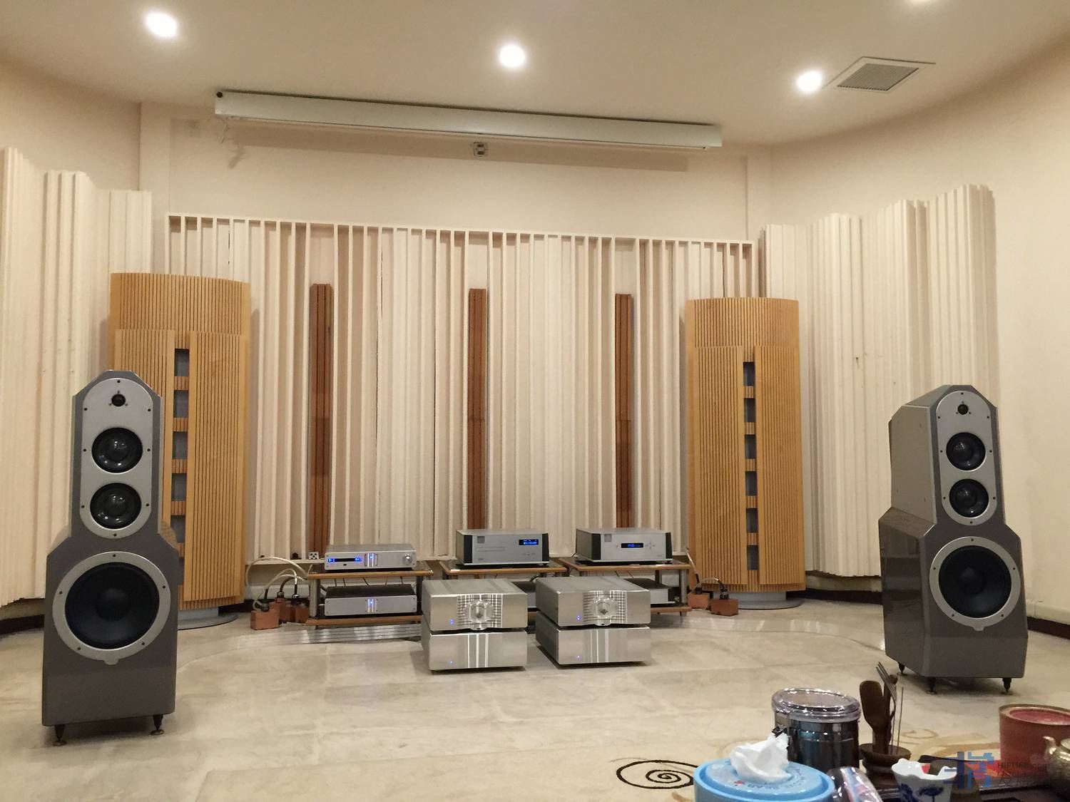 2017.9.29.《江门欣赏记》听说林生刚从美国回来,故乐林8t,李大师,深度扫描,去南泉拜访林生听音室。其实在江门发烧界里有着许多传奇人物,林生可算是一位了,他投入心机专注打造了一间标准尺寸40多平方的别墅式听音室,按照声学原理装修得富丽堂煌,安静舒适环境。林生对空间和器材要求的标准是要有精准的三维结像,同时有清澈透明而不臃肿的中频,能够分辨出音调和动态中细微的差异,可见要求极高。做在听室里面空气清新,适宜欣赏音乐。先放一张极为靓声的飞利浦金线版《美岛丽MlD0Rl》小提琴拉奏帕格尼尼,柴可夫斯基小协,这张碟表现相当靓声,能拥有丰满的高频空气感,层次分明,速度恰到好处,空间残响生气活泼,与室内灯光互相辉映,此女拉小提琴内在潜质超高,气质高贵优雅,琴声要比其他版本更加迷人和引人入胜。李大师放入一张《阿诺德》交响乐清丽脱俗,音乐感更是清新又带点润泽,气势可是无匹的,爆发力表现过关,非比寻常。美国Eggleston Works Andra III大音箱之风范就是好,爆棚气势相当从容。听完几张碟仍是感觉意犹未尽。播放《马勒第三交响曲》磅礴气势出现时往往会收干后级的力水,二个乐章之后,发现美国krell EVO旗舰one独立四分体单声道后级,斯文淡定,场面低频时,舞台气息连绵不绝,阵阵的低频涌现,堂音是既结实,而充满密度,细节也较多,轻松过关。“三、一、七”比例摆位,很容易做好三维空间感,效果OK。继续法雅《三角帽》芭蕾舞曲,只要听女高音与后面人声够不够场感,够了,女高音定位稍往前,和声往后,与舞者形成一个差距,管弦乐衬托中,爆烈金属质感,乐器音色很甜,没有太过吵耳,堂音和音场较为宽广,质感不错,听来充满活力。过瘾。林生是下了真功夫,从器材到线材样样试了又调,器材组合相当壮观:设备有:美国怀念旗舰WADIA971+922+933转盘解码时钟。前级是美国KRELL EVO 202高级二分体电源前级+美国krell EVO旗舰one独立四分体单声道后级+美国Eggleston Works Andra III大音箱+美国音乐丝带旗舰奥丁电源线及喇叭线+专线电源处理插座+加拿大范天神FDII音响HIFI架子,整套系统发挥得其有水准,久听不愿离开,感谢林生招待。